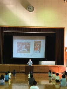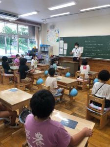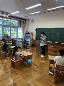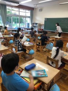 式が終わった後は、久しぶりに会う友だちと、夏休みの思い出話に花が咲いていました。みなさん、とってもうれしそうです。宿題も頑張ってきましたね。お互いに工作の見せ合う姿もありました。