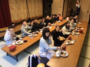 広島に到着しました。昼食はハンバーグランチです。皆おいしそうに食べていい表情をしていますね。しっかり食べてパワーをつけましょう。