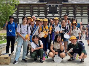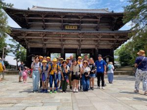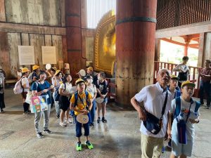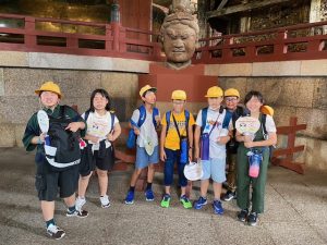 7/14(金)、6年生12名と地域の方2名で、奈良(東大寺・奈良公園)、京都(東寺)へ行きました。まずは、奈良公園に到着したら、東大寺を見学しました。
