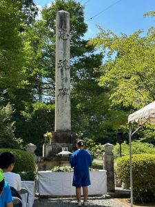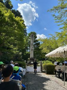 その後は、「大山地区平和記念式典」に参加しました。大山地区出身戦没者の霊を慰め、世界の平和を祈念するために、毎年行われています。6年の代表2名が平和の誓いと非核平和都市宣言をしました。