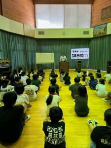 8月28日(月)、本日から2学期が始まりました。校舎内は子どもたちの元気な声が響き渡り、活気が戻ってきました。始業式では、校長先生から「チャレンジすることは大切。2学期はいろいろな学校行事があるので、一人一人が具体的に目標をもち、6年生を中心に全校生が力を合わせて頑張っていこう。頑張ったことが、生き生きと輝く大山っ子につながります。」というお話がありました。