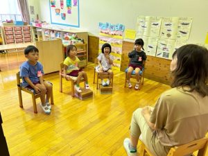 本日(9/1)、幼稚園では2学期の始業式がありました。元気いっぱいに登園してきてくれました。久しぶりに友だちと会い、とてもうれしそうでした。始業式では、園長先生のお話をよい姿勢で聞くことができました。とても張り切って、やる気まんまん!!2学期もがんばろうという意欲が伝わってきました。