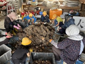 今日は大山上地区に出かけていき、地域の方と一緒にあもち芋のばらし作業を体験させていただきました。作業をしながら、あもち芋の良さや、歴史、収穫量などについて質問に答えていただき、楽しく学びながらの作業となりました。