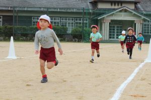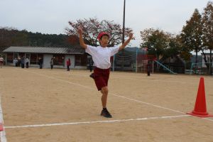 ゴールを切るときは、笑顔だけでなく悔しい顔、歯を食いしばる顔などいろいろな表情がありましたが、全力を出し切りひとつたくましさが増した大山っ子の姿がたくさん見られました。すばらしい大会新記録も誕生しました。そして、友だちを力いっぱい応援する姿がよかったです。