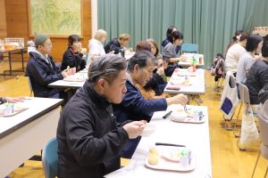 どんな給食を食べているのか、地域の皆様や保護者の皆様に実際に知っていただくために「学校給食試食会」を開催しました。当日は29名の参加者があり、栄養教諭から給食センターの取組の様子について説明を受けながら実際に給食を試食していただきました。