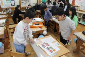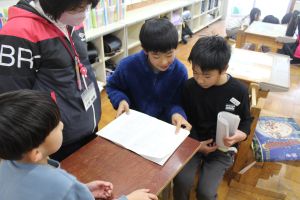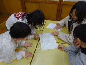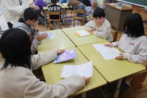 この日は、1年生から6年生の全校学びとして、がんばりノートを縦割り班に分かれて互いに見せ合いました。自分のがんばっているところを友だちから誉めてもらったり、友だちのがんばりから次のヒントをつかんだりして楽しく交流することができました。
