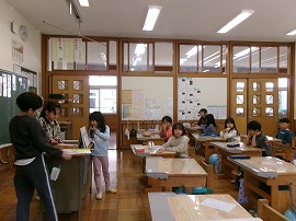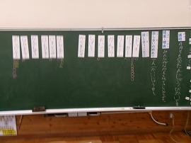 新しい学級になって、第1回目の話し合い活動です。今回は「4、5月のお誕生日会の計画」です。司会役・記録役を決めて話し合いはスタートしました。「1人1回は発表する」をめあてに、みんながんばって意見を言ったり質問をしたりすることができ活発な話し合いができました。