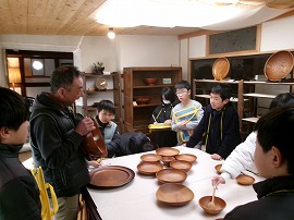 社会科で「豊かな森林に恵まれた日本」のという学習をしており、その一環で大山小学校区にある「居七十七(いなとな)」さんへ行ってきました。漆器などの木工品をつくられている工房で、お椀などたくさんの作品を見せてもらいました。また、間伐の大切さや森林を守っていくことについてのお話を聞くことができ、学習を深めることができました。
