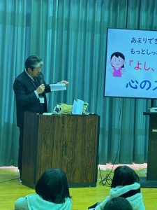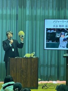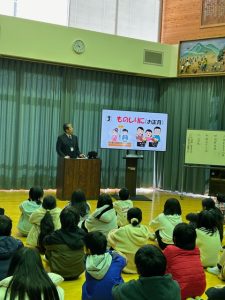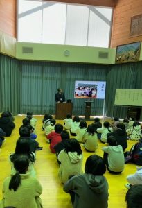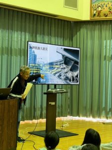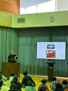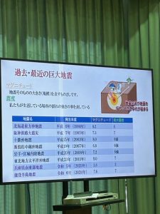 避難訓練のあとは、防災士資格をお持ちの校務員さんの講話がありました。阪神淡路大震災の被害の様子や、過去に起こった地震について、防災の心構え等、わかりやすくお話していただきました。