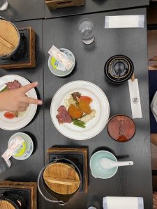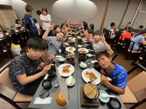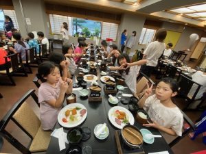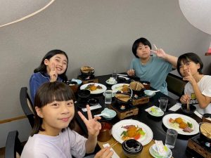 自然学校最後の夕食です。カニも出ました♫楽しくおいしく食べました。