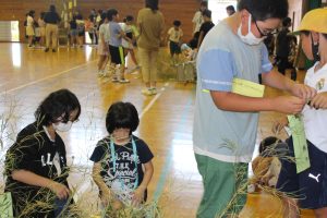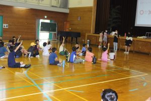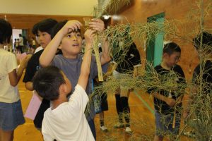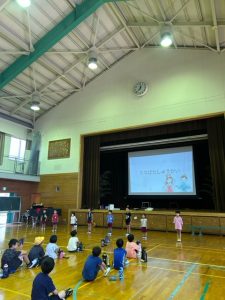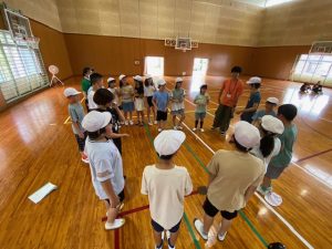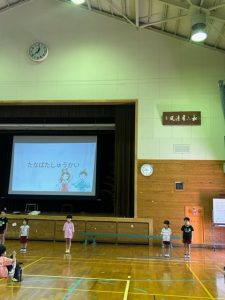 オープニングは幼稚園の歌からスタート!!!続いて、○×クイズ、フリスビードッジ、七夕の飾りつけをしました。6年生が「ここに並ぶんやで!」等声をかける姿が多くみられました。その姿を他学年の子たちも見て、声をかけあっていました。6年生の優しく接する姿がよいお手本になってくれました。会場はあたたかい雰囲気に包まれ、和やかに進みました。