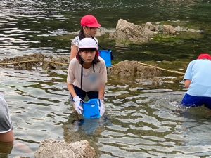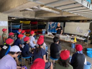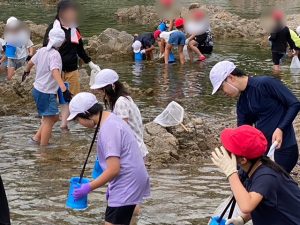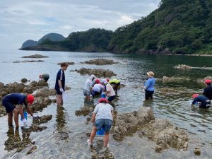 自然学校の午後からは磯観察をしました。ヤドカリや小さなかわいい魚を見つけることができました。海のことを学び、海博士になれたかも!!竹野スノーケルセンターの方の話を興味津々で聴くことができました。