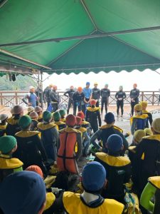 みんな元気に2日目の朝を迎えました。朝ご飯をしっかりと食べました。朝食後は、最終日のカッター体験の打ち合わせをしました。そして電車で城崎駅へ移動しました。